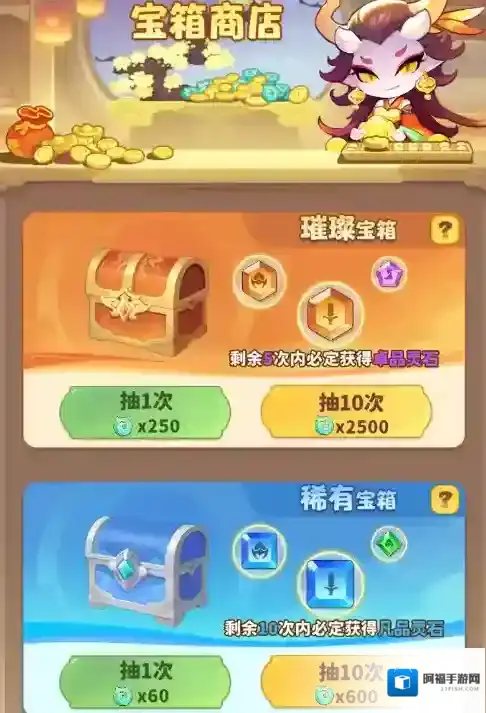1、天命人大大缺灵石可以考虑花费一定仙玉购买璀璨宝箱,不推荐购买稀有宝箱。