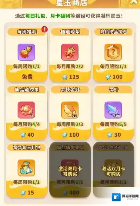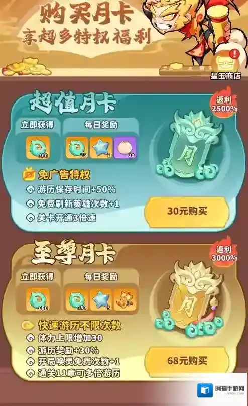 3、氪佬选择两个月卡都购买,一个月可以获得7730仙玉,和多种特权,快速提升战力。在星玉商城还可以兑换专属的兑换材料。