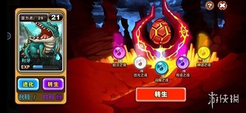 5、宠物还可以在进化符中进行转生,S级和普通宠物需求一致,通过转生系统,便得到一级小宝宝,在其基础能力(双攻、双防、hp、速度)均得到提升,宠物将得到激励点(1~25)波动,同时获得觉醒技能。
