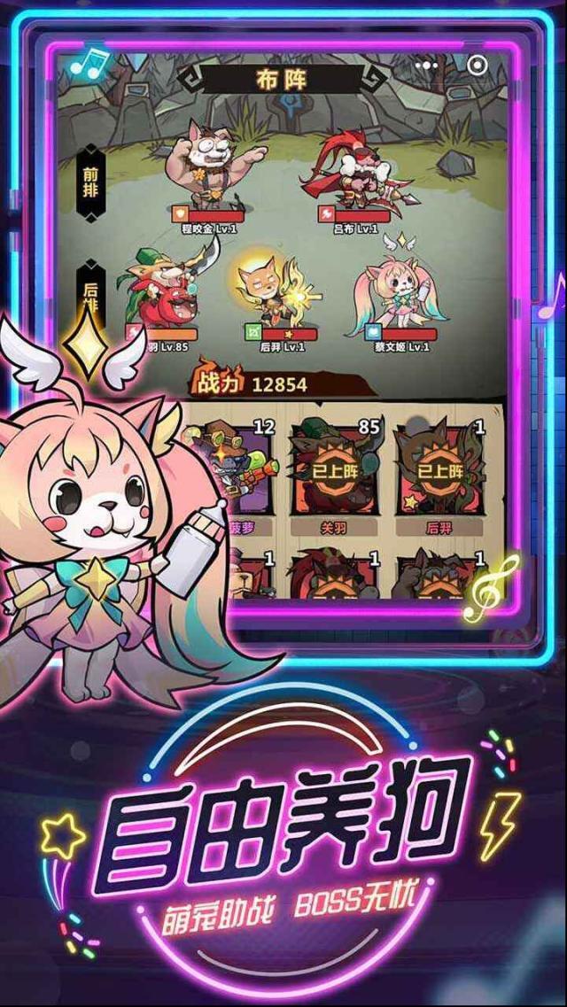 在这里没有复杂难懂的系统,只需搭配好你的狗将阵容,随手点点就能轻松闯关!
