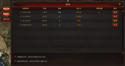 在组队系统,可以在[组队平台]界面看到当前服务器内存在的玩家队伍,可以根据自己的意愿选择申请加入某一支强力队伍。